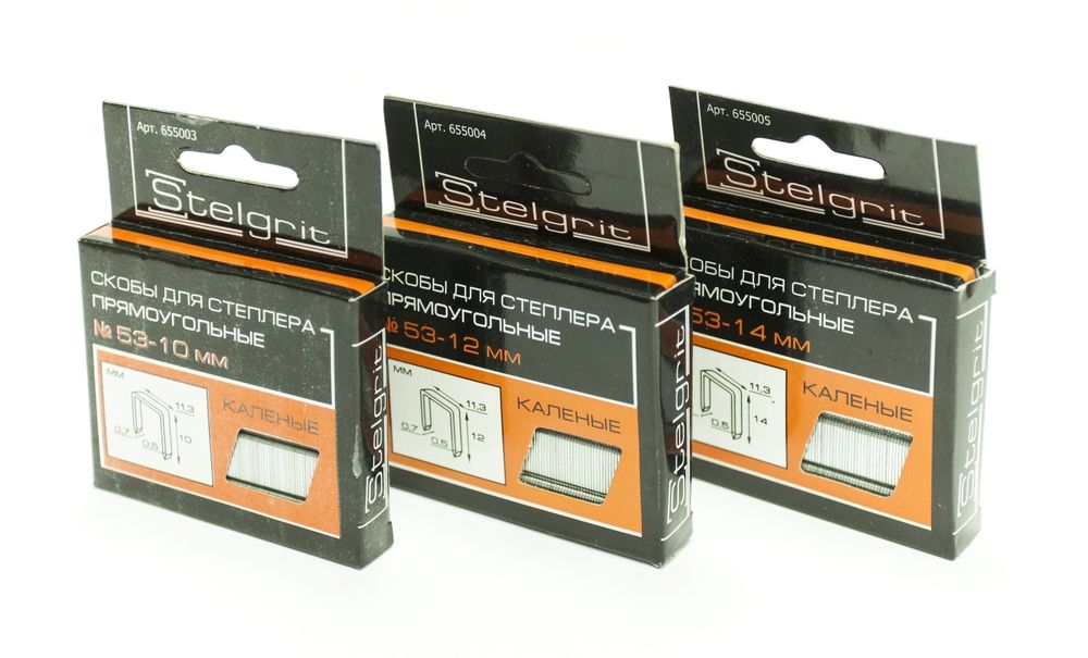 Скобы для степлера каленые 10х0,7мм Stelgrit (1000 шт)